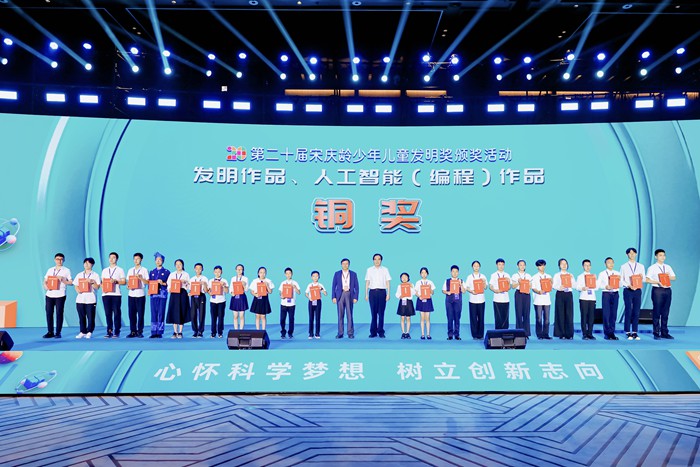 第二十届宋庆龄少年儿童发明奖颁奖活动同期举办。本届发明奖共有来自全国31个?。ㄊ?、自治区)、港澳地区及马来西亚、新加坡的5.7万余名青少年积极参赛,4.6万余件作品参评,创历届新高。经评审,获奖作品共计590件,其中发明作品346件(金奖36件、银奖104件、铜奖206件)、人工智能(编程)作品183件(金奖20件、银奖57件、铜奖106件)、创意作品61件。另外,还遴选出优秀科技绘画作品95件进行展览。